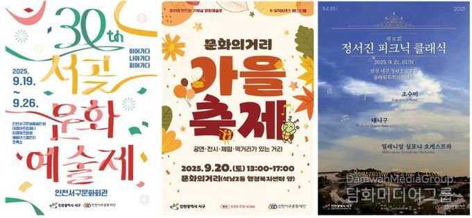 시민행정신문 강갑수 기자 | 인천 서구는 제37회 구민의 날 행사와 함께 서구문화재단이 준비한 3개 문화축제가 9월 19일부터 21일까지 개최된다고 16일 밝혔다.