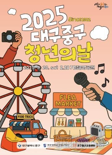 시민행정신문 강갑수 기자 | 대구 중구는 청년의 날(매년 9월 셋째 주 토요일)을 기념해 오는 20일 오후 2시부터 10시까지 2·28기념중앙공원 일원에서 ‘2025년 중구청년의 날 행사’를 개최한다.