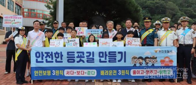 시민행정신문 이존영 기자 | 무안경찰서는 9월 17일 남악초등학교 앞에서 군청, 교육 지원청, 소방서, 모범운전자회, 남악초등학교 교사 등 유관기관과 협업하여 등굣길 어린이 약취유인 예방 및 교통안전 캠페인을 전개했다.