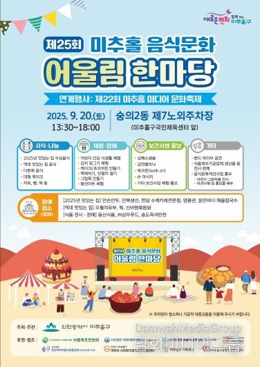 한편, 이번 행사는 ‘미추홀 미디어문화축제’, ‘나이스 미추마켓’을 비롯한 여러 행사와 연계돼, 볼거리와 즐길 거리가 한층 더 풍성하게 펼쳐질 예정이다.