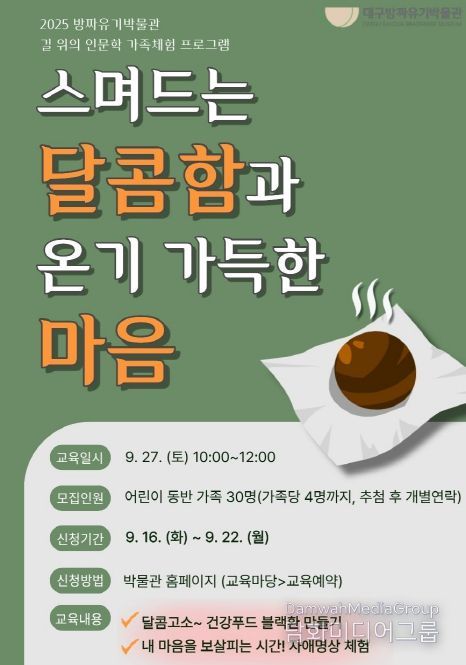 시민행정신문 강갑수 기자 | 대구문화예술진흥원 박물관운영본부 소속 대구방짜유기박물관은 가을을 맞아 가족체험 프로그램을 9월 27일에 운영하며 참가자를 모집한다.