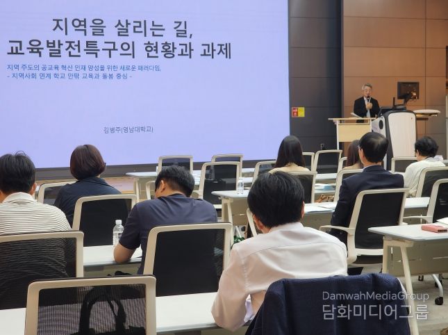 이번 대전교육발전포럼은 ‘지역을 살리는 길, 교육발전특구의 현황과 과제’를 주제로 교직원, 학부모, 교육전문(행정)직원, 대전시청, 지역대학 관계자들을 대상으로 진행됐다. 영남대학교 김병주 교수가 전문가 발표자로 참여했고, 지정 토론자로는 대전시교육청 혁신정책과 이종직 장학관, 초등교육과 오민영 장학사, 대전갑천중학교 전국화 교사가 참여하여 교육청 및 학교 현장의 다각적 관점에서 논의가 이루어졌다.