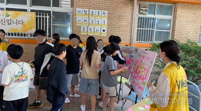 또래상담을 담당하고 있는 학생들은 생명존중 캠페인 운영에도 함께 참여하며 적극적인 공감과 소통의 자세를 실천했다.