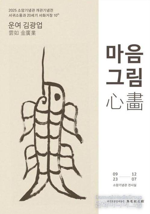 예로부터 ‘서(書)는 심화(心畵)’, 글씨가 곧 마음의 그림이라 불려 왔으며, 이는 글씨를 통해 한 사람의 인품과 내면의 사상이 드러남을 의미한다. 운여 김광업의 서예와 전각 작품 또한 단순한 문자표현을 넘어 내면세계를 담아내고 있어,‘마음그림’의 의미가 더욱 선명히 드러난다.