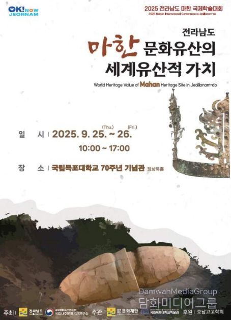 시민행정신문 이존영 기자 | 국가유산청 국립문화유산연구원 국립나주문화유산연구소는 전라남도와 함께 9월 25일부터 26일까지 국립목포대학교 70주년 기념관(전남 무안군)에서 '전라남도 마한 문화유산의 세계유산적 가치'를 주제로 국제학술대회를 개최한다.