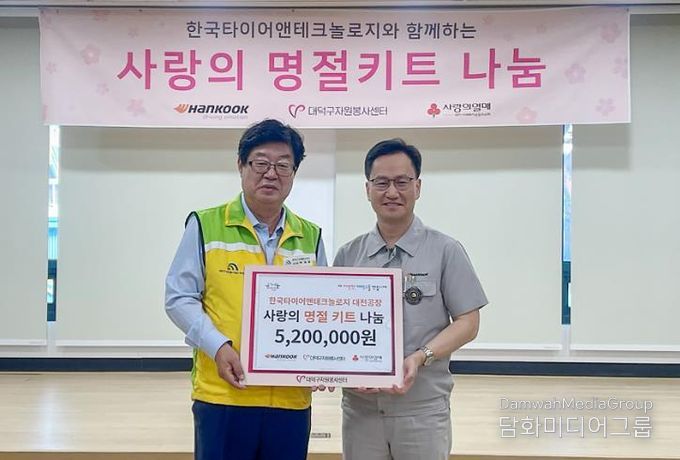 시민행정신문 강갑수 기자 | 대전 대덕구는 23일 한국타이어앤테크놀로지 대전공장 임직원이 추석을 앞두고 지역 어려운 이웃을 위해 ‘사랑의 명절키트 나눔’을 진행했다고 밝혔다.