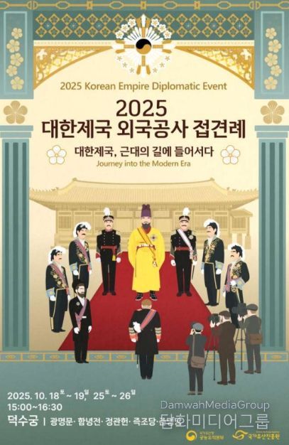 시민행정신문 이존영 기자 | 국가유산청 궁능유적본부는 국가유산진흥원과 함께 10월 18일~19일, 25일~26일 오후 3시 덕수궁(서울 중구)에서 고종 황제가 외국공사를 접견하는 의례와 연회를 재현한 공연 '2025년 대한제국 외국공사 접견례'를 개최한다.