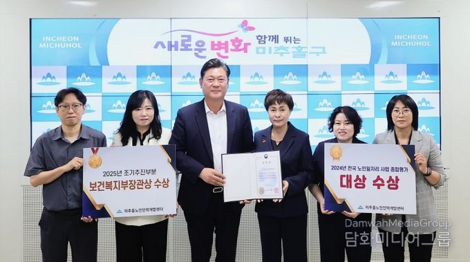 시민행정신문 강갑수 기자 | 인천 미추홀노인인력개발센터(센터장 김태화)는 지난 22일 웨스턴조선서울에서 열린 ‘2025년 노인 일자리 주간 기념식’에서 보건복지부 장관 표창이자 최고 영예인 ‘대상’을 수상했다.