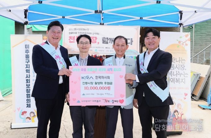 이번 기부는 전통시장 활성화 사업의 일환으로 마련됐으며, 한국마사회 인천미추홀지사가 후원하고 (사)학산나눔재단이 주최했다.