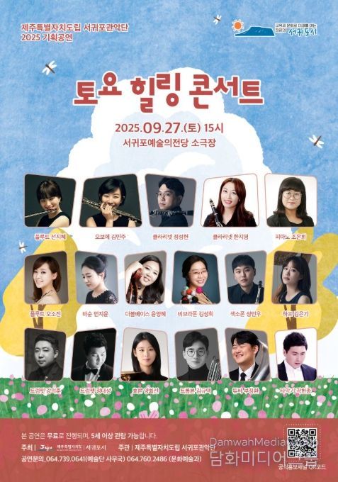 시민행정신문 기자 | 서귀포시는 9월 27일 15시 서귀포예술의전당 소극장에서 서귀포관악단의 기획공연 '토요힐링콘서트'를 진행한다.