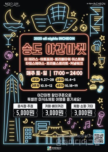 시민행정신문 조규호 기자 | 인천광역시와 인천관광공사(사장 백현)는 9월 27일부터 10월 19일까지 매주 토·일 4주간 송도 일대 6개 상권에서 풍성한 할인혜택과 더불어 상권별 다양한 행사를 즐길 수 있는‘2025 all nights INCHEON 송도 야간마켓’을 개최한다고 밝혔다.