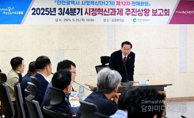 시민행정신문 강갑수 기자 | 인천광역시는 9월 25일 시청 공감회의실에서 ‘2025년 3/4분기 시정혁신과제 추진상황 보고회’를 개최했다고 밝혔다.