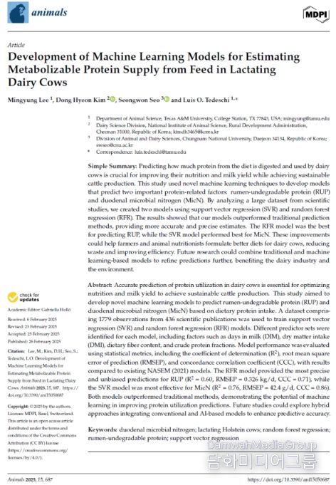 두 가지 예측 모형은 젖소에게 공급되는 핵심 단백질인 ‘반추위에서 분해되지 않고 소장에서 흡수되는 단백질(RUP)’과 ‘반추위 미생물이 사료를 분해하며 합성하는 단백질(MicN)’을 정확히 예측할 수 있도록 설계됐다.