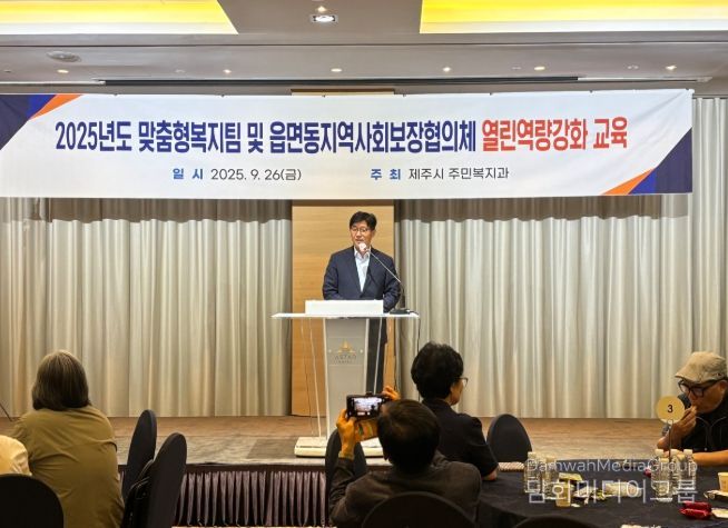 시민행정신문 강갑수 기자 | 현원돈 제주시 부시장은 9월 26일 아스타호텔에서 열린 ‘2025년도 맞춤형복지팀 및 읍면동지역사회보장협의체 역량강화’ 교육에 참석해 관계자들을 격려했다.
