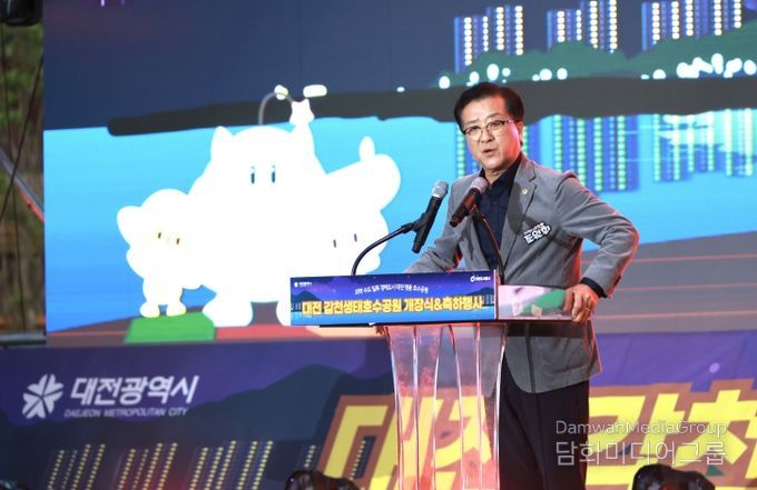 시민행정신문 기자 | 대전시의회 조원휘 의장은 27일 갑천생태호수공원 수변광장에서 개최된 대전 갑천생태호수공원 개장식에 참석해 관계자들을 격려하며 공원 개장을 축하했다.