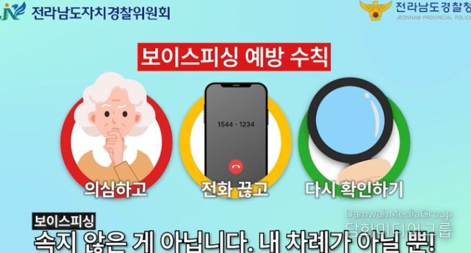 이에 전남자치경찰위원회는 젊은 세대부터 고령층까지 누구나 쉽게 이해할 수 있도록 짧고 직관적인 숏폼 형식의 보이스피싱 예방 영상을 제작해 배포하고, 전남자치경찰위원회 누리집을 통해 누구나 다운받아 활용할 수 있도록 했다.