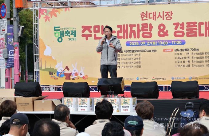 시민행정신문 조규호 기자 | 인천 동구는 지난 27일 현대시장에서 ‘현대시장 주민노래자랑&경품대잔치’를 성황리에 개최했다고 밝혔다.