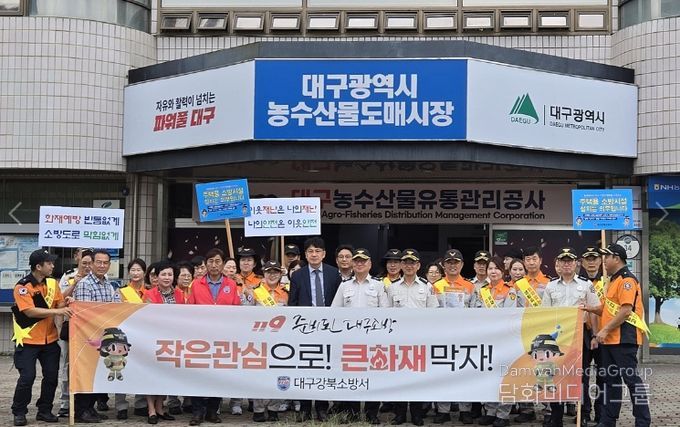 시민행정신문 강갑수 기자 | 민족 대명절 추석을 앞둔 지난 25일, 대구농수산물유통관리공사는 대구소방안전본부, 대구강북소방서와 함께 직접 도매시장 현장에 대한 합동 점검을 통해 화재 등을 대비한 재난안전 체계 확보에 총력을 기울였다.