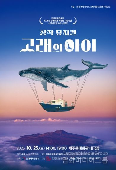 시민행정신문 기자 | 제주특별자치도 문화예술진흥원이 한국문화예술회관연합회 주관 ‘2025년 문예회관 특성화 지원 사업 신작제작형’ 공모에 선정된 창작뮤지컬 ‘고래의 아이’를 오는 10월 25일 문예회관 대극장에서 선보인다.