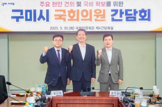 시민행정신문 기자 | 구미시는 9월 30일 국회를 방문해 구자근, 강명구 지역구 국회의원과 간담회를 열고 지역 주요 현안과 국비 확보 전략을 논의했다. 이날 간담회에는 김장호 시장을 비롯해 구미시 주요 간부 공무원 등 30여 명이 참석했다. 시는 현안 사업 추진 상황과 정부 예산 동향을 공유하며 국회 차원의 전략적 지원 방안을 모색했다.