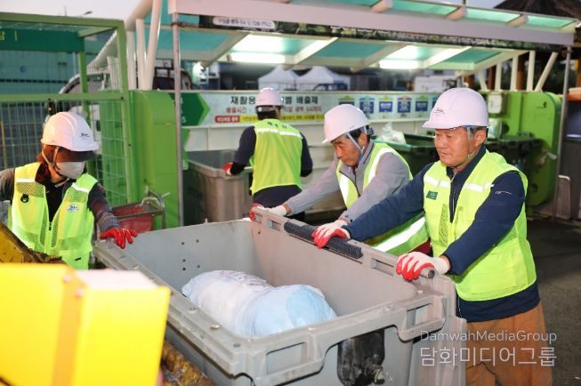 김완근 제주시장은 이날 새벽 구좌읍 청소차량 차고지를 찾아 청결한 제주시를 만들기 위해 힘쓰고 있는 청소차량 운전원과 환경미화원들을 격려하고, 가연성폐기물 수거 작업에 직접 참여했다.