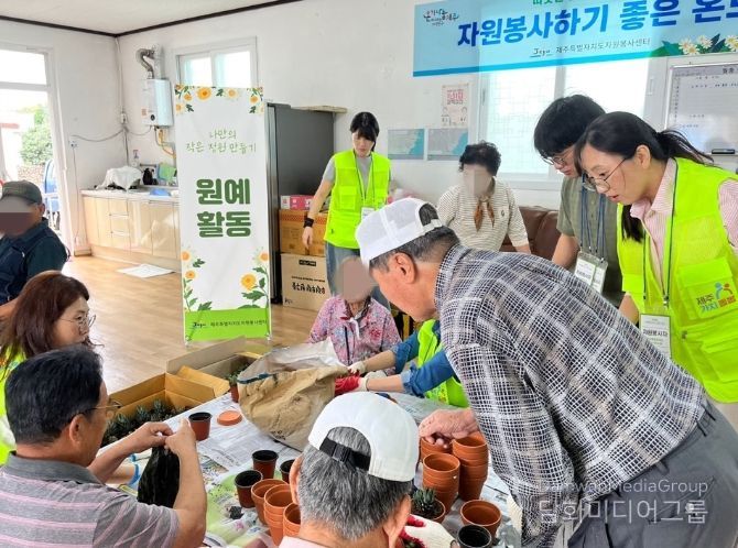시민행정신문 강갑수 기자 | 제주특별자치도사회서비스원은 지난 9월 30일, 성산읍 신풍리경로당에서 어르신들과 함께하는 원예 자원봉사 활동을 실시했다.