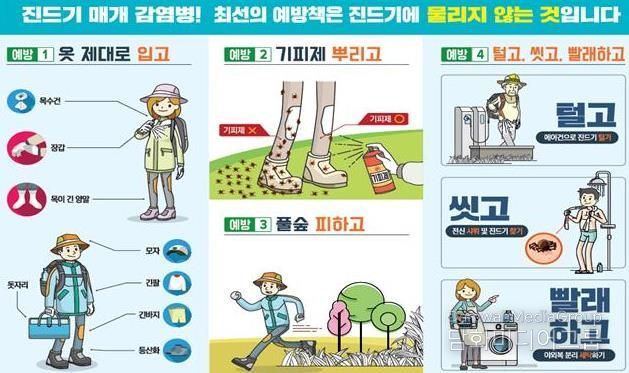 김태운 대구광역시 보건복지국장은 “진드기매개 감염병을 예방하기 위한 가장 좋은 방법은 진드기에 물리지 않는 것”이라며, “야외활동 시 긴 옷을 입고 기피제를 사용하며, 귀가 후에는 바로 옷을 세탁하고 샤워하는 등 예방 수칙을 준수하는 것이 중요하다”고 당부했다.