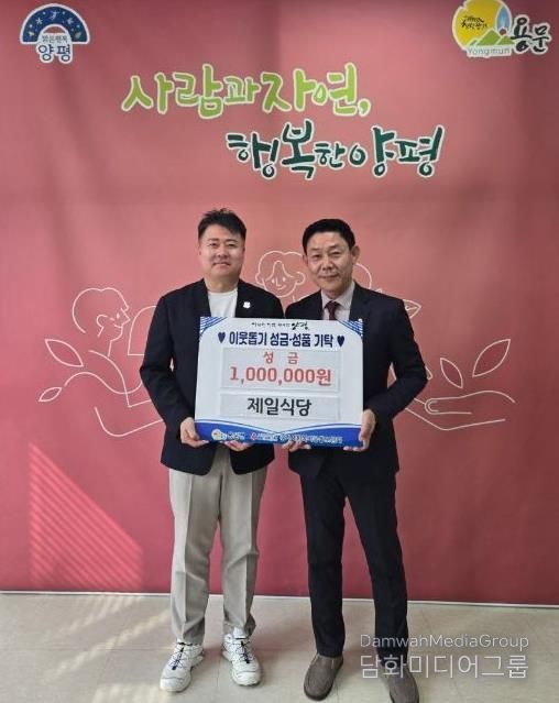 홍명기 용문면장은 “경기 침체와 어려운 여건 속에서도 용문면 주민들을 위한 따뜻한 나눔을 실천해 주신 제일식당에 깊이 감사드린다”며 “후원해 주신 기부금은 지역 내 복지 사각지대 해소에 소중히 활용하겠다”고 말했다.