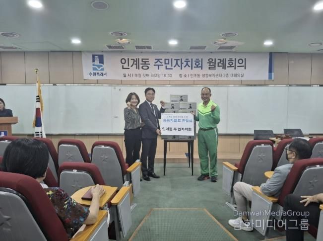 이날 전달받은 송풍기 벨트는 인계동 환경관리원에게 전달됐으며, 낙엽 청소 등 관내 환경정비에 사용될 예정이다.