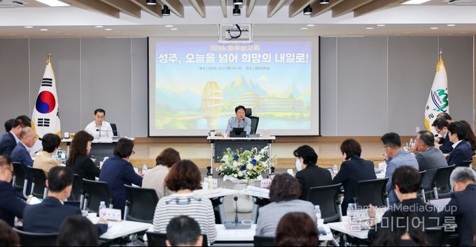 시민행정신문 강갑수 기자 | 성주군은 10월 2일 군청 문화강좌실에서 팀장급 이상 간부 공무원이 참석한 가운데‘2026 업무보고회’를 개최하고, 민선8기 마지막 해의 군정 운영 방향과 주요 과제를 점검했다.