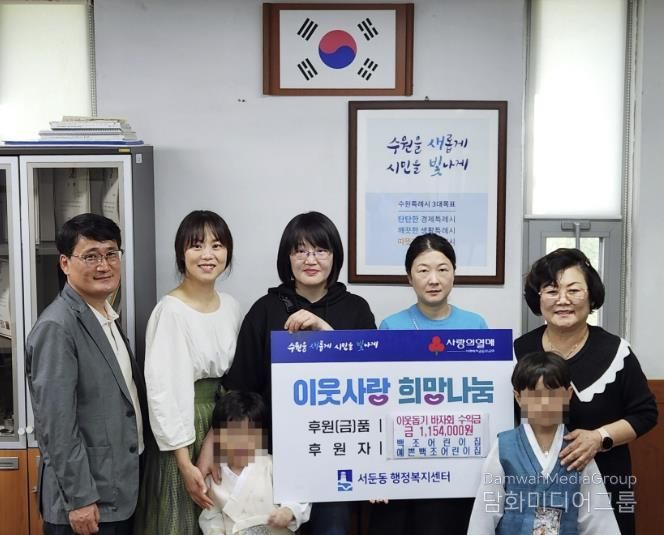 시민행정신문 강갑수 기자 | 수원시 권선구 서둔동에 위치한 백조어린이집 및 예쁜백조어린이집은 지난 2일, 지역사회 내 어려운 이웃과 소외계층을 위해 어린이집 체험활동 수익금 1,154,000원을 서둔동행정복지센터에 기부했다.