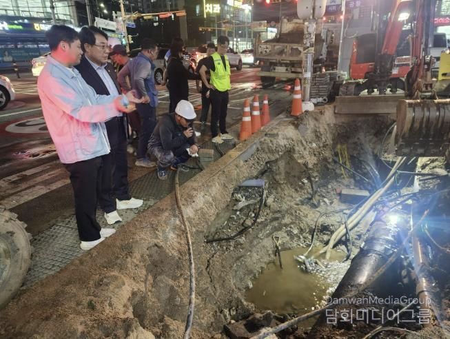 해당 민원 발생 소식을 접한 조성대 의장은 저녁 일정을 취소하고 급히 복구현장을 방문해 집행부 관계 공무원으로부터 누수 발생 경위와 공사 진행사항 등을 보고받고 지역 주민들의 의견을 청취한 뒤 현장을 점검했다.