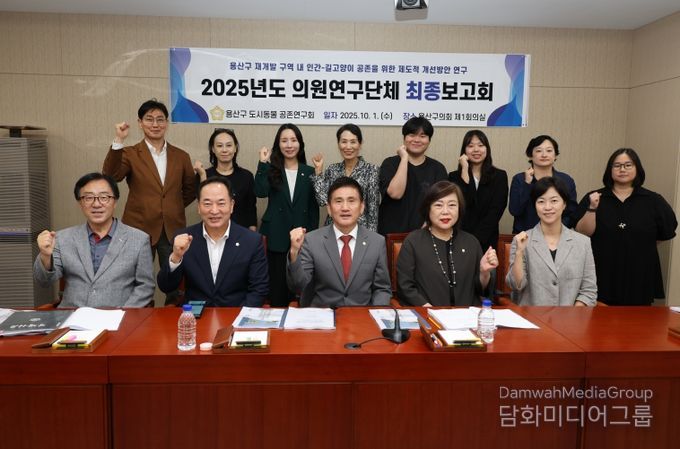 이번 최종보고회에는 ▲용산구 도시동물 공존연구회 (대표의원 이인호) ▲용산비전기획 (대표의원 황금선) ▲서울시 용산구 지속가능한 폐기물 처리방안 연구회 (대표의원 이미재) 등 총 3개의 의원연구단체가 참여했다.