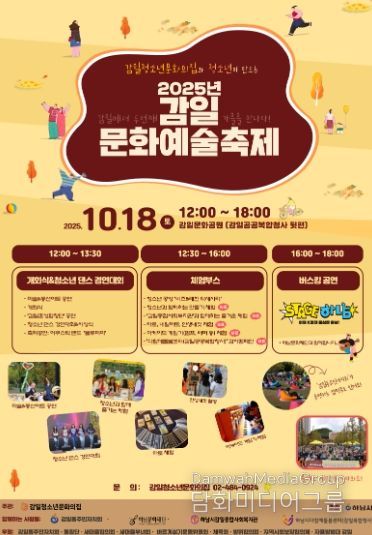 시민행정신문 기자 | 하남시 감일청소년문화의집은 오는 10월 18일 오후 12시부터 18시까지 감일문화공원(감일공공복합청사 뒷편)에서 '제2회 감일문화예술축제'를 개최한다.