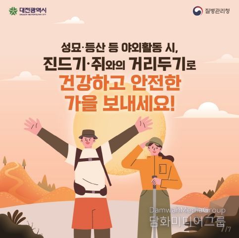 시민행정신문 기자 | 대전시는 성묘와 등산, 농작업 등 야외활동이 늘어나는 가을철을 맞아 시민들에게 진드기·설치류 매개 감염병 예방수칙 준수를 당부했다.