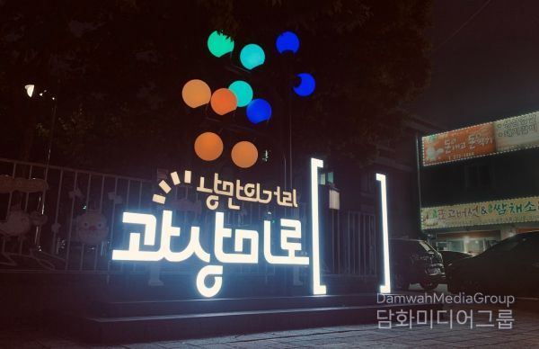 과상미로의 진입부에는 ‘낭만의 거리’라는 문구의 사인 조명과 수목 조명을, 약 400m 길이 보행로에는 열주등을, 어린이공원 앞 구간에는 포토존 조형물을 설치해 활력 있고 밝은 분위기를 만들었다.