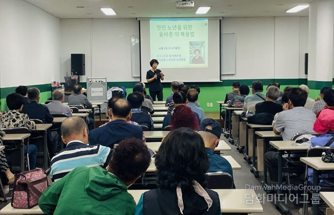 이은경 약사는 30여 년의 현장 경험을 바탕으로 고혈압·당뇨병 치료제의 올바른 복용법, 음식과의 상호작용, 주의해야 할 복용 사례, 약물 오남용 실제 사례 등을 설명하며, 어르신들이 일상에서 바로 실천할 수 있는 실질적인 복약 지침을 제공했다.