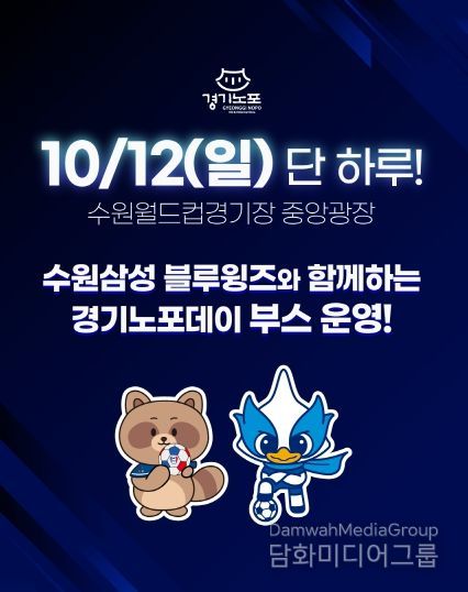 12일 오전 11시부터 수원월드컵경기장 중앙광장에서 진행되는 경기노포 홍보 부스 및 뽑기 이벤트를 통해 경기노포 바우처 등 다양한 경품을 받을 수 있다. 또 경기 중 하프타임 전광판 게임 이벤트를 통해 추가 경품을 증정할 예정이다. 자세한 내용은 9일 오후부터 수원삼성블루윙즈 공식 SNS를 통해 확인할 수 있다.