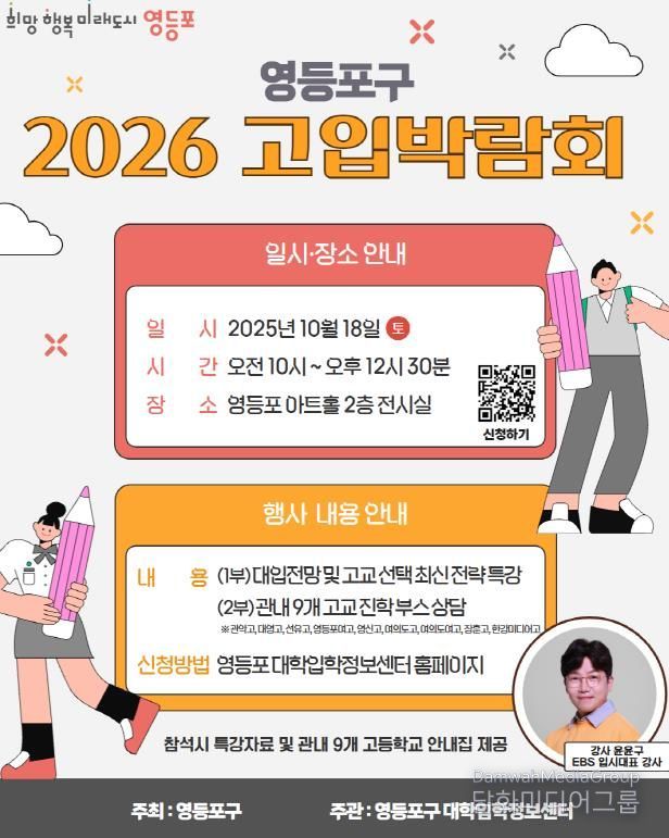 아울러 오는 11월 22일 영등포 아트홀에서는 ‘2026 대입 정시 지원전략 설명회’를 개최할 예정이다. 행사와 관련한 자세한 사항은 ‘영등포 대학입학센터’ 또는 구청 미래교육과로 문의하면 된다.