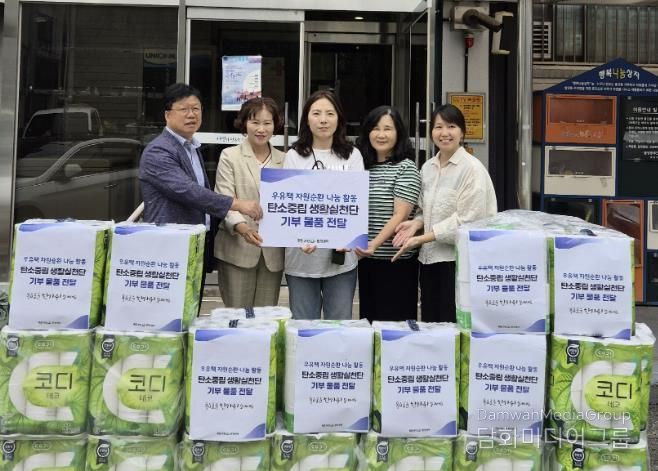 푸른과천환경센터 탄소중립 생활실천단은 지역 내에서 수거한 우유갑을 재활용해 화장지로 교환하는 자원 순환 활동을 펼치고 있으며, 이번 기부를 통해 총 24롤 45묶음의 화장지를 별양동주민센터에 전달했다.