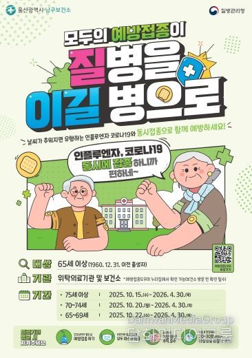 시민행정신문 기자 | 울산 남구보건소는 겨울철 코로나19 유행에 대비해 이번 달 15일부터 65세 이상 어르신을 비롯한 고위험군을 대상으로 무료 예방접종을 실시한다고 밝혔다.