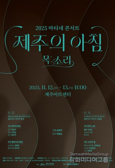 강동철 제주아트센터 소장은 “이번 공연은 클래식과 국악, 동서양 다양한 장르가 친절한 해설과 함께 어우러져 아침의 낭만을 선사할 특별한 무대”라며, “음악으로 여는 하루의 감동을 많은 시민과 함께 나누고 싶다”고 밝혔다.