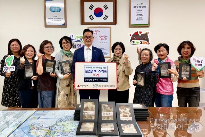 시민행정신문 강갑수 기자 | 남양주시는 14일 천연염색 동아리 ‘시나브로’가 천연염색 체험을 통해 직접 제작한 스카프 30개를 다산1동 지역사회보장협의체에 기탁해 나눔의 가치를 실천했다고 밝혔다.