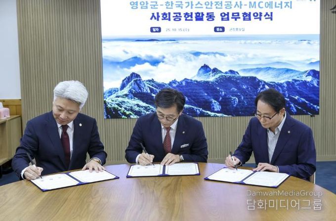 시민행정신문 강갑수 기자 | 영암군이 15일 군청에서 한국가스안전공사 전남서부지사, MC에너지(주)와 ‘사회공헌활동 업무협약’을 맺었다.