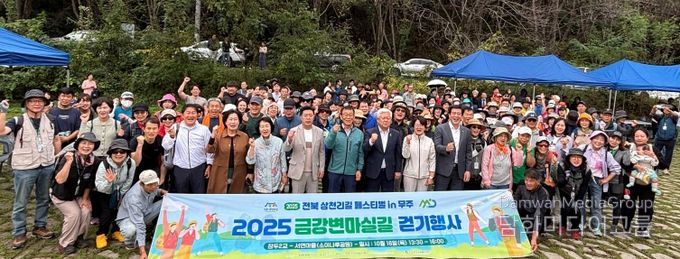 시민행정신문 강갑수 기자 | 전북특별자치도와 무주군이 공동 주최한 ‘2025 전북 삼천리길 페스티벌 in 무주 – 아름다운 금강변 마실길 걷기’ 행사가 16일 무주군 부남면 금강변 일원에서 200여 명이 참여한 가운데 성황리에 열렸다.