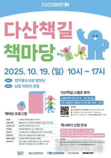 행사 현장에서는 다산책길 캐릭터 포토존과 상인회 홍보 부스를 비롯해 △독서 쉼터 △어린이도서관 △책나바다(교환·나눔) △책비티아이(독서 성향 검사) △컬러링 아트 등 다산책길 브랜드가 반영된 다양한 프로그램이 운영된다.