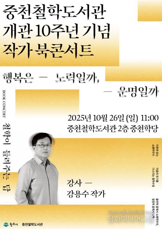 시민행정신문 기자 | 원주시 중천철학도서관은 오는 26일 오전 11시, 개관 10주년 기념 작가 북콘서트를 개최한다.