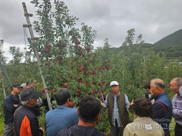 이번 견학은 곡성군 사과 재배농업인 30명이 참석한 가운데, 사과 다축 재배 기술과 과원 관리 기법을 현장에서 직접 보고 배우는 실질적인 교육의 장으로 마련됐다.