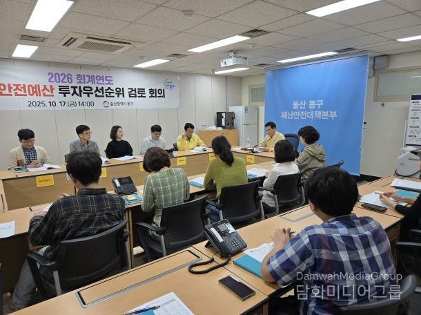 시민행정신문 강갑수 기자 | 울산 동구는 10월 17일 오후 2시 3층 재난상황실에서 재난안전 관련 담당자들이 함께 2026년 재난 안전 예산 우선순위를 검토했다.