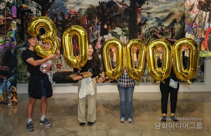 청주공예비엔날레조직위원회는 지난 18일 오후 4시 5분, 30만 돌파 축하이벤트를 진행했다. 개장 시간부터 이어진 단체 관람객과 가족 단위 관람객 행렬에 이어 30만 번째로 입장한 주인공은 청주 복대동에 거주하는 김경목 씨 가족이었다.
